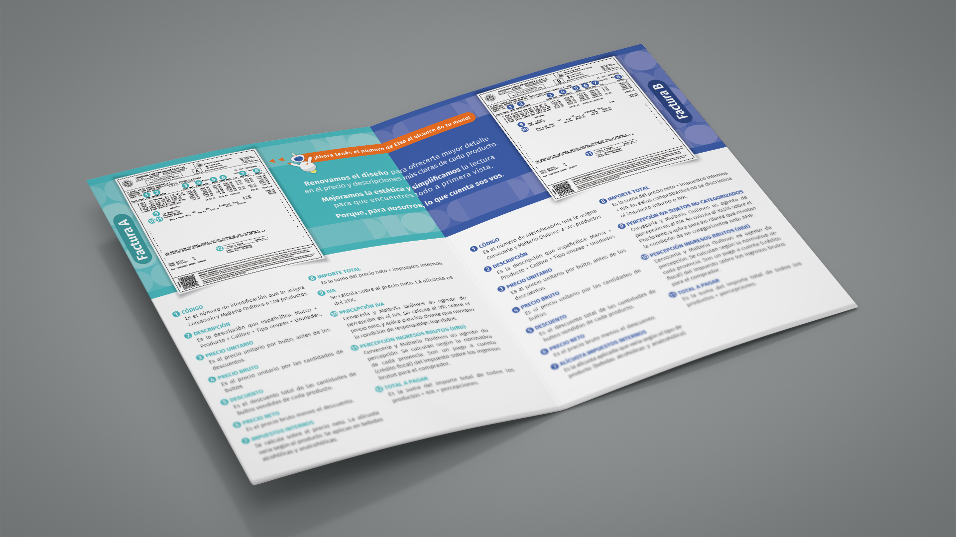 Diseño de folleto institucional para el sistema de facturación de Cervecería y Maltería Quilmes.